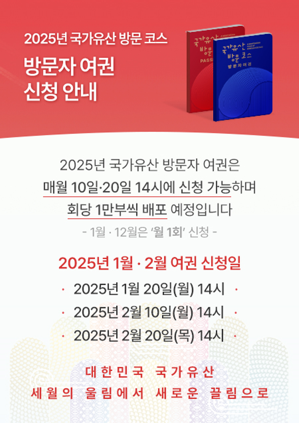 2025년 국가유산방문자 여권을 발급받고 싶으신 분은 아래에서 발급받을 수 있으니 확인해 보세요.
