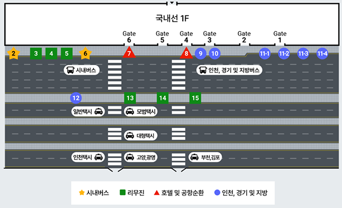 ✅국내선 터미널: 1층 도착장 밖에 리무진 버스 정류장이 있습니다. 탑승 안내 표지판을 따라가면 쉽게 찾을 수 있습니다.