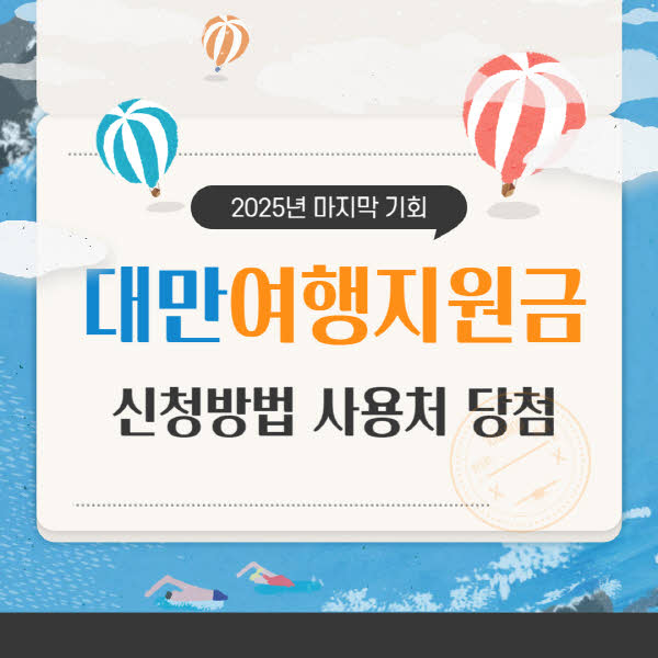 다만, 매년 예산이 소진될 경우 조기 종료될 수 있으므로, 대만 여행 계획이 있다면 서둘러 신청하는 것이 좋습니다.