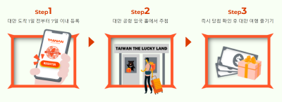 3) 경품 수령은 대만 도착 당일에만 가능하므로, 입국 후 바로 이벤트에 참여하는 것이 중요합니다.
