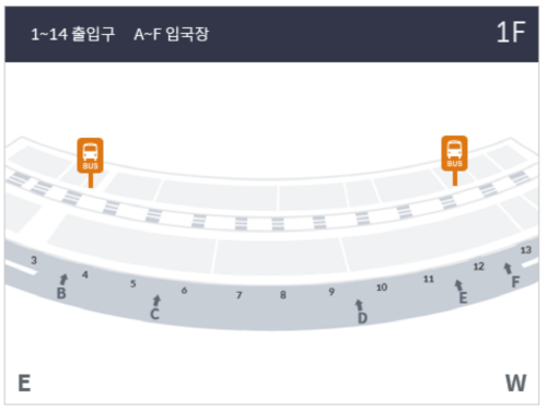 제1여객터미널 1층 3번, 13번 (길건너편)