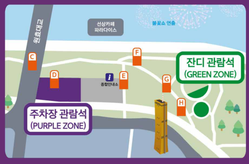 - 주변 관람객과의 신장차이, 행사 관람 위치 및 구조물, 나무 등의 이유로 일부시야가 제한될 수 있습니다.
